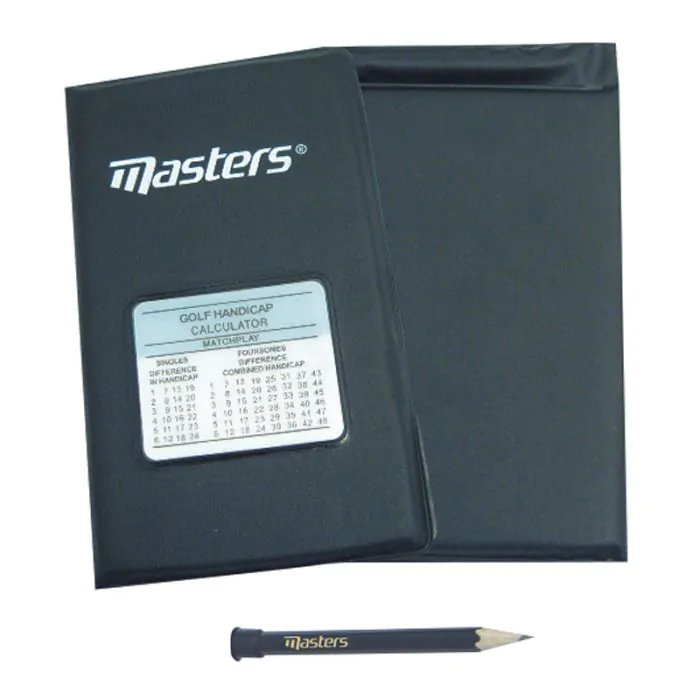 A protective case for your score card, keeping it dry and providing a firm writing surface. It features a handicap calculator, score card clip and a pencil.