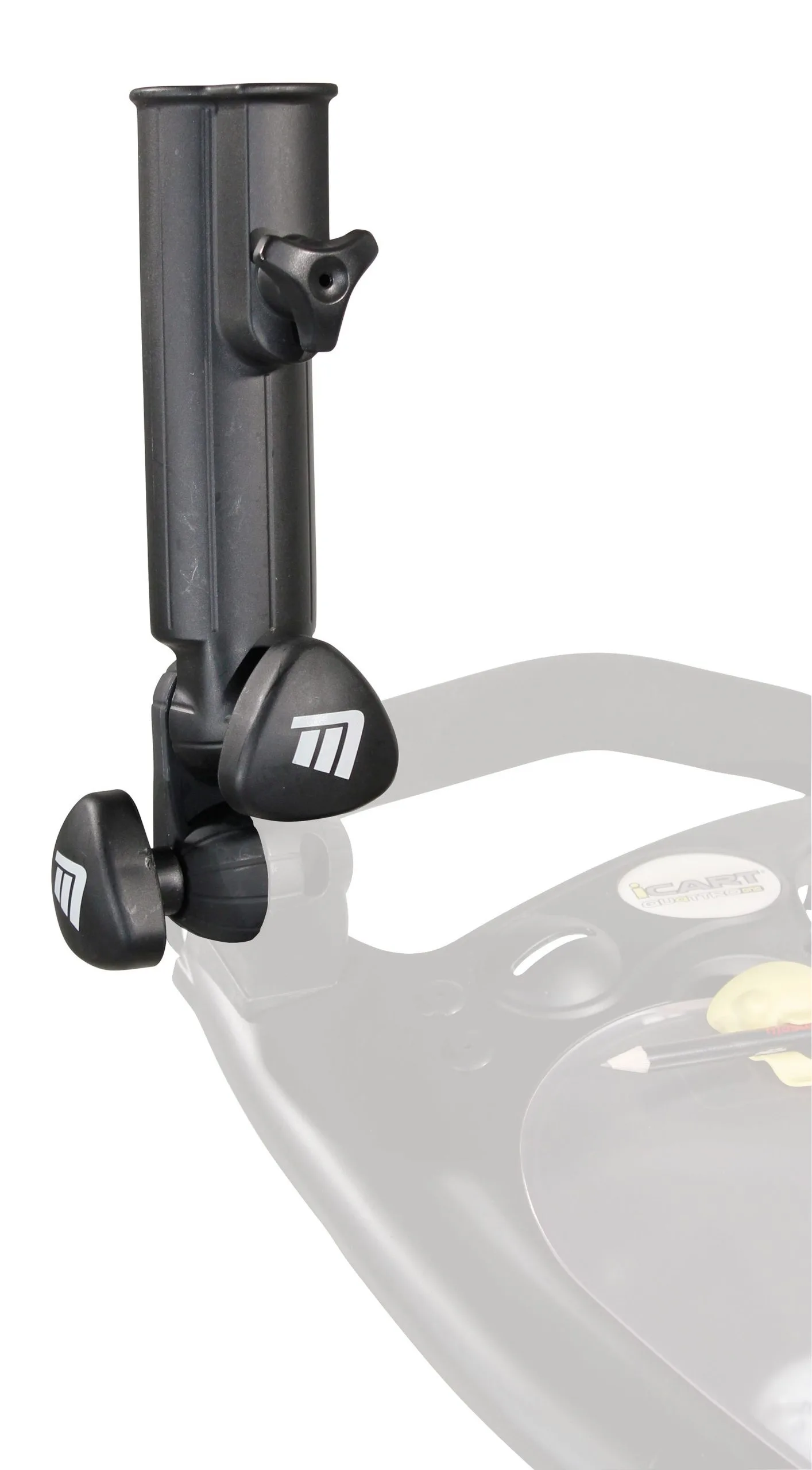 The universal attachment fits all Masters and iCart trolleys where the attachment is available on the handle. A clamp is also provided to fit to carts without this attachment.