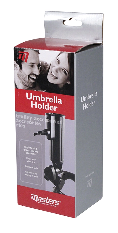 The Deluxe Umbrella Holder attaches to your golf trolley in seconds. It holds your umbrella while you take your shot. whilst at the same time offering cover for your equipment.